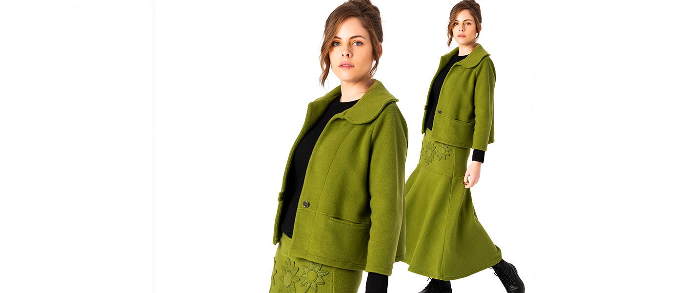 Chaqueta verde con textura, cierre por botón, cuello y bolsillos. Detalles bordados para un estilo único y elegante.