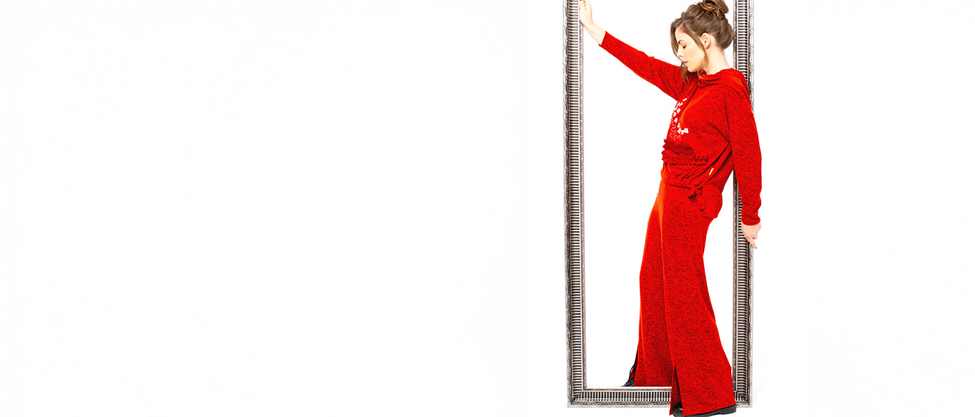 Pantalón fluido de hilo torcido carda en fuego con aberturas, bordados y cinturilla elástica para un ajuste perfecto.